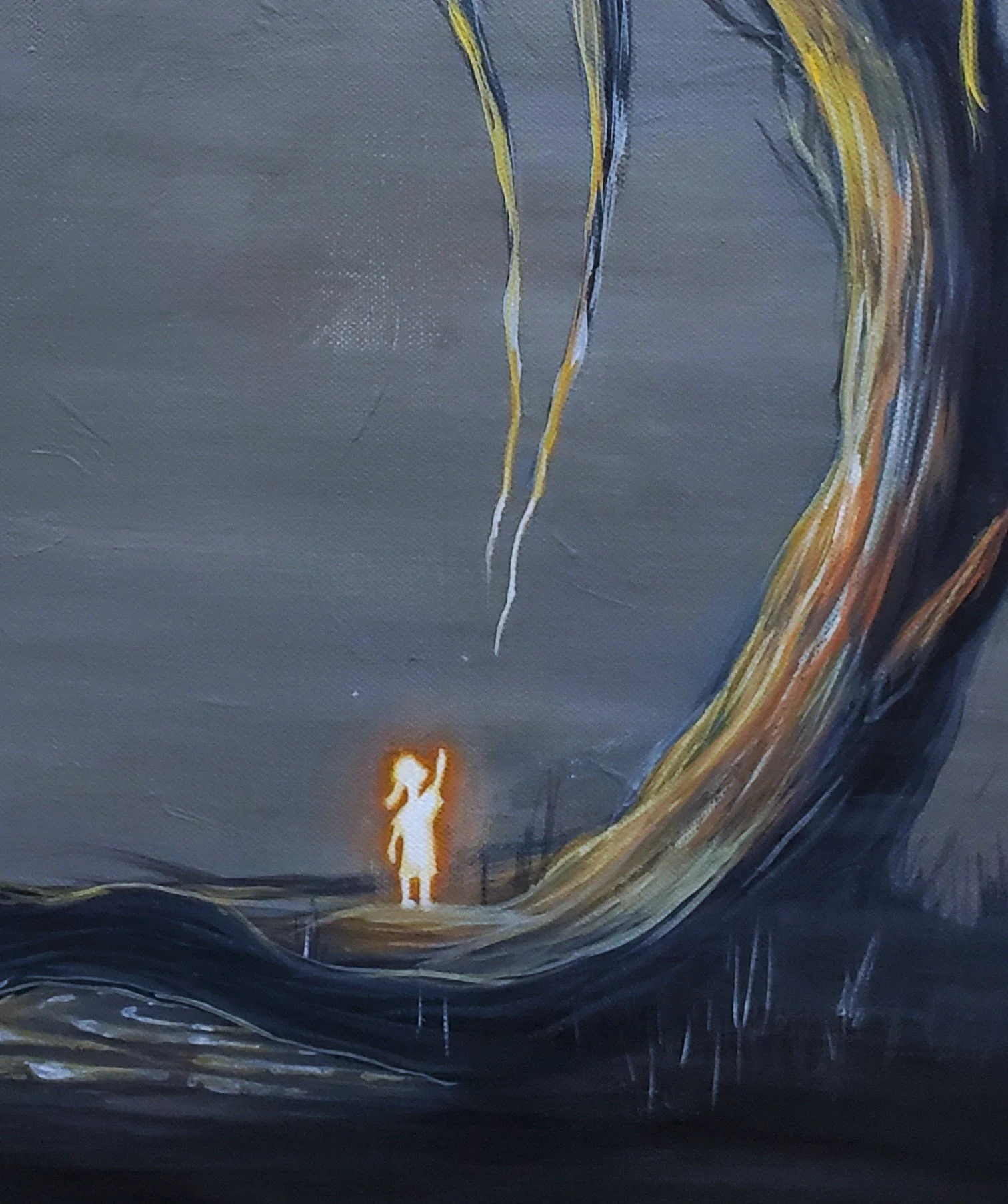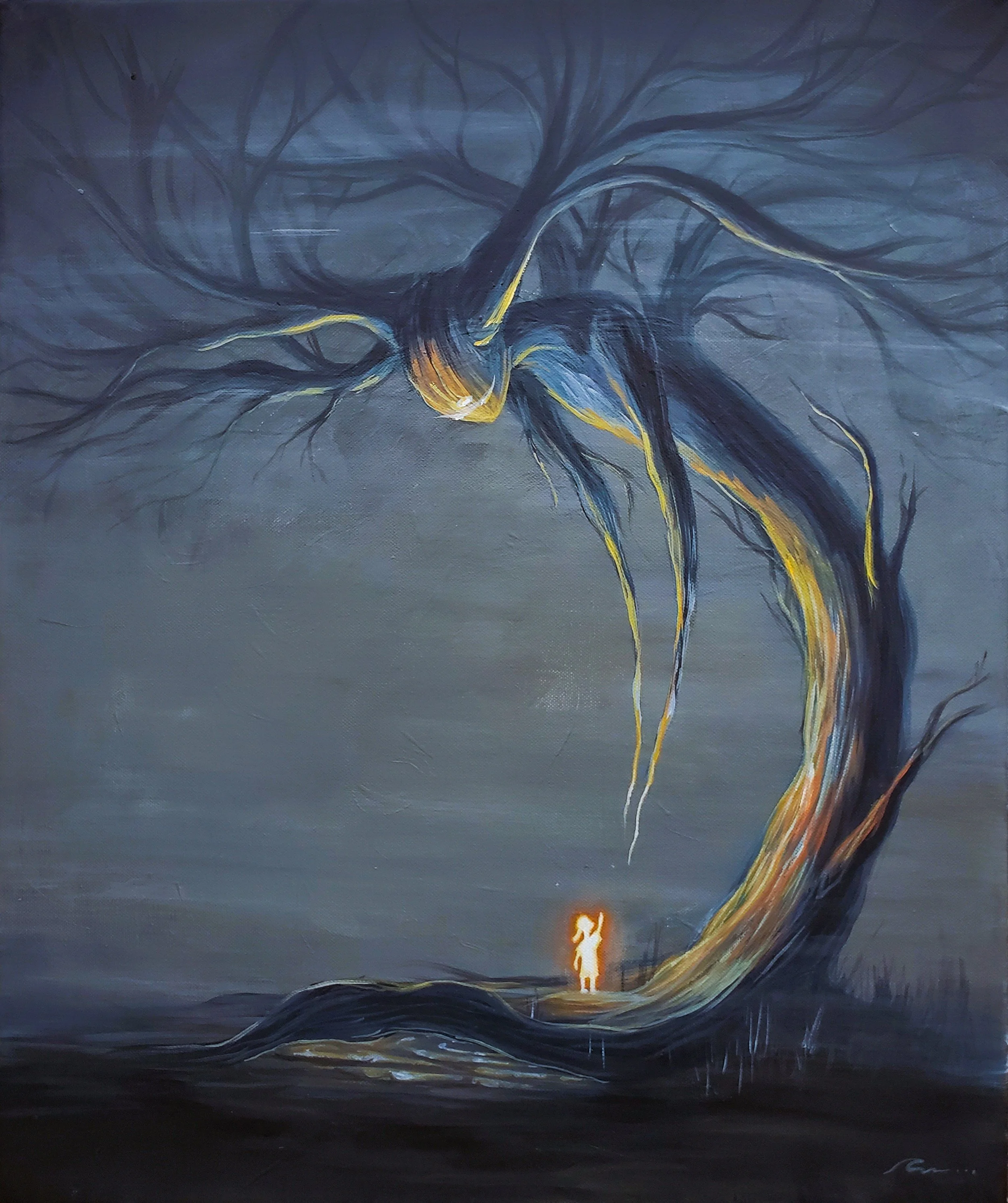 “In the dead of the winter, I wandered into the forest. A small flame in the dark woods. I whispered, “Mother it’s me. I’m home”. I reached out, wanting to return. Be held by her once again”